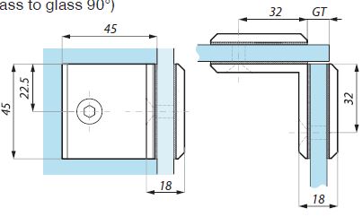 CDA glass clamp glass/glass 90 degrees polished chrome