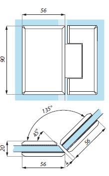 CDA HINGE GLASS TO GLASS 135 DEG polished chrome