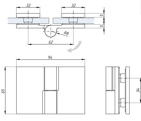 CDA hinge Lifted hinge 180˚ - left (glass to glass) polished chrome