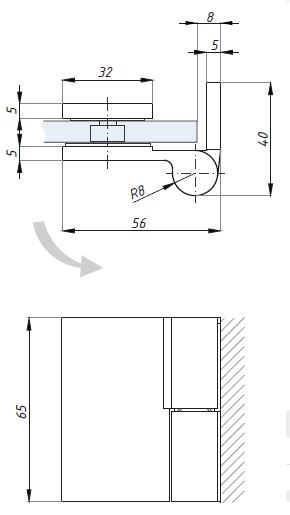 CDA hinge Lifted hinge 90˚ - right (wall to glass) polish