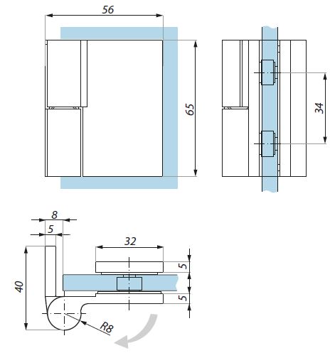 CDA Lifted hinge 90˚ - left (wall to glass) For glass 6-8 mm