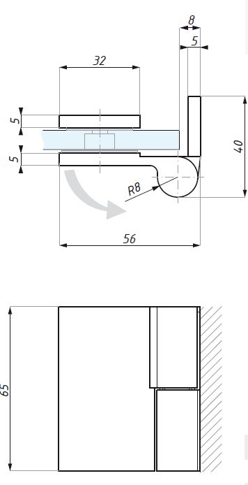 CDA Lifted hinge 90˚ - right (wall to glass) For glass 6-8 mm black
