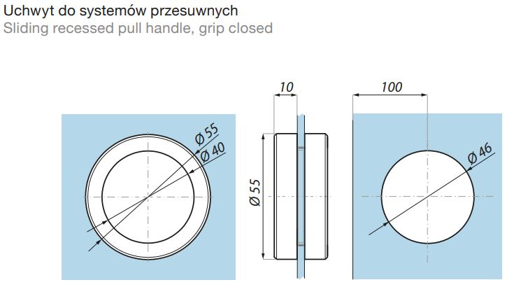 CDA Pull handle D=55 mm Glass thickness: 8-12 mm silver anodized