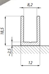 CDA U-SECTION PROFILE FOR FIXED PANELS, FOR 8MM GLASS, L=3000MM satin