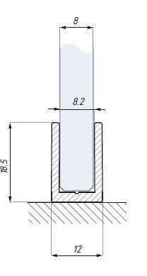 CDA U-SECTION PROFILE FOR FIXED PANELS, FOR 8MM GLASS, L=3000MM
