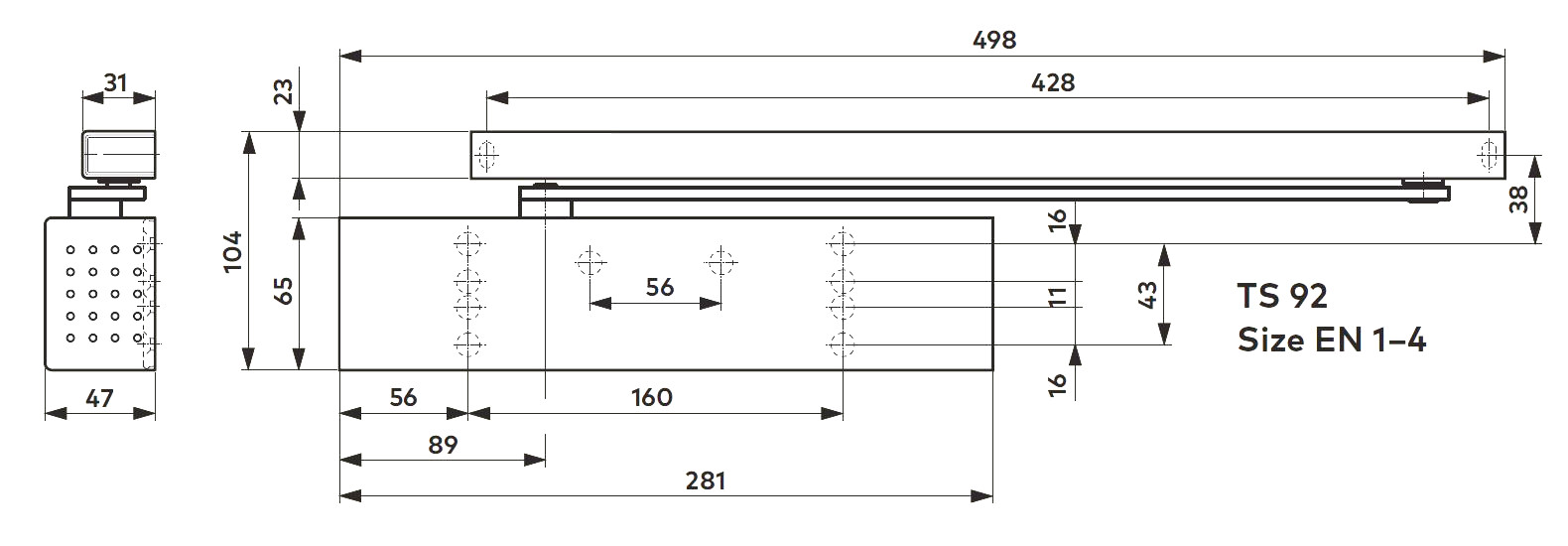 DORMA door closer TS 92 G EN 2-4 with slide channel