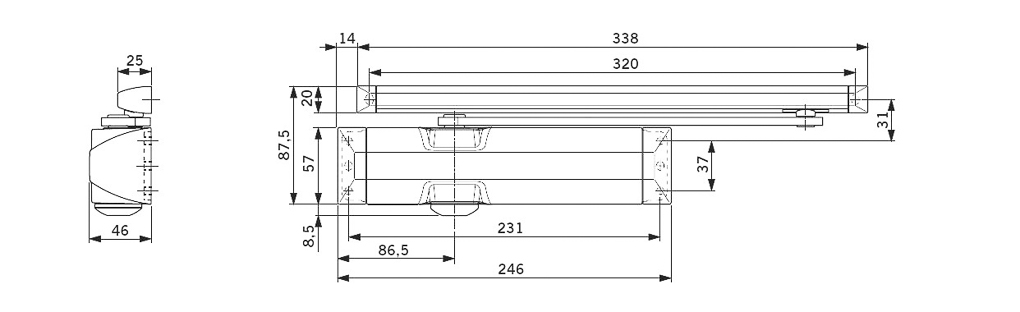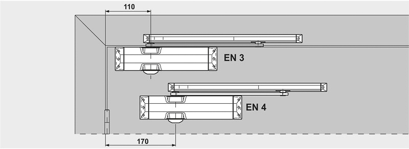 DORMA door closer with slide channel arm TS90 Impulse EN 3/4 silver