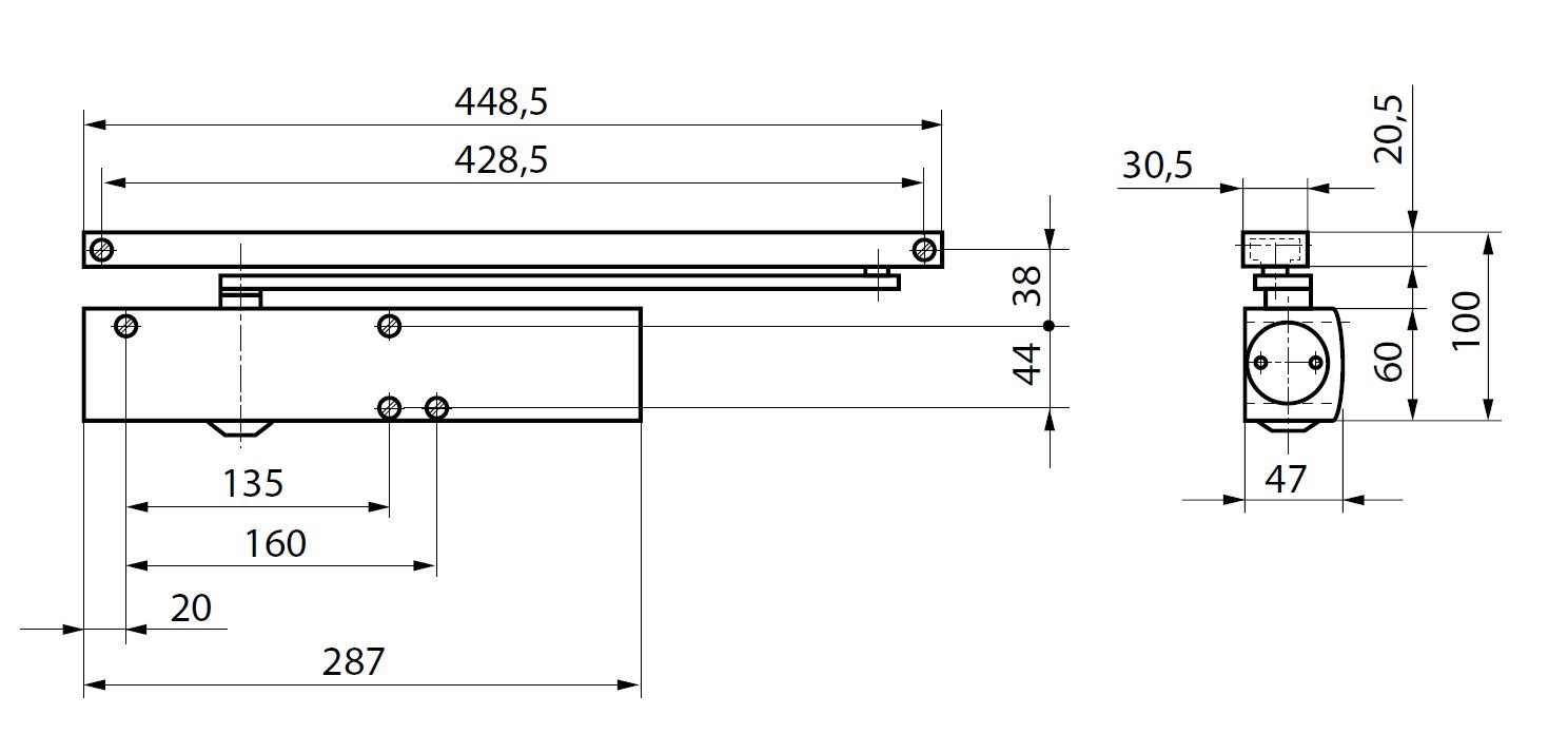 Reguleeritav sulgemisjõud esipaneelilt EN 2-6