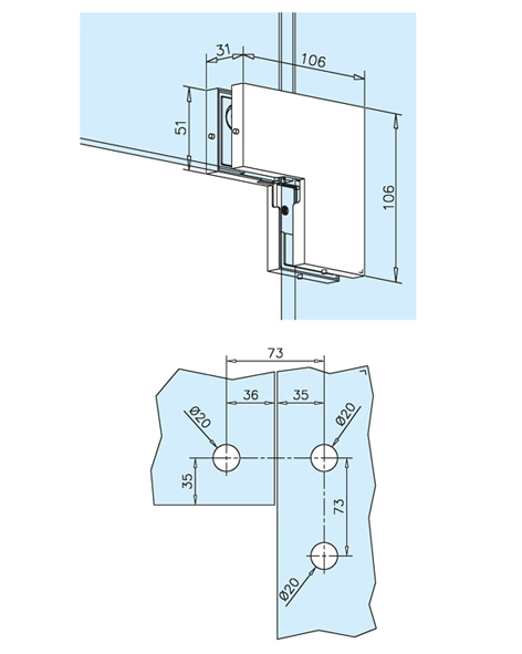 GF Corner connection patch, glass/glass, for 10-12mm glass, black