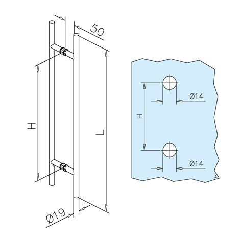 GF Door handle mod 53, double-sided, L 500mm H-300 satin stainless steel