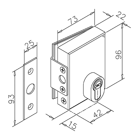 GF Door lock with 3 keys for glass thickness 10 mm Stainless steel design