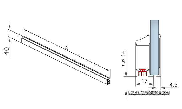 GF Drop down seal, self-adhesive, DIN left , L 825 mm silver matt anodized