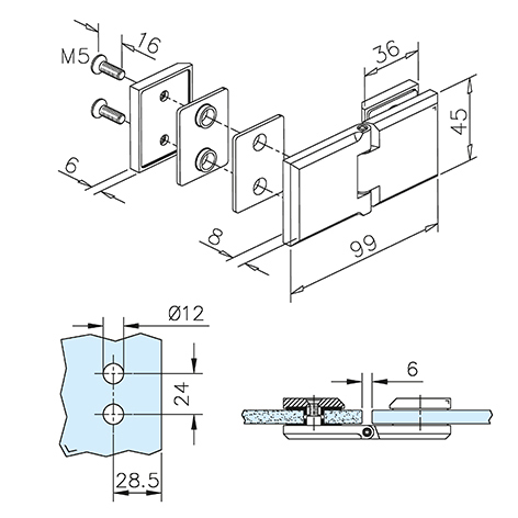 GF Glass door hinge 41.0305.000... glass/glass 180 deg for glass thickness 6-10 mm SSS