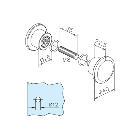GF Glass door knob, double-sided, for 8-12mm glass, chrome design