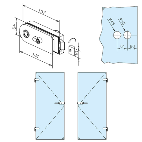 GF Glass door lock for lavatory, for 8-10mm glass, satin