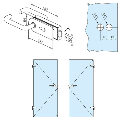 GF Glass door lock with handles for glass thickness 8 - 10 mm SSS