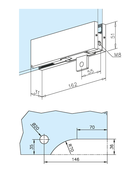GF Glass door stop, with M8 thread for 10-12mm glass, anthracite design