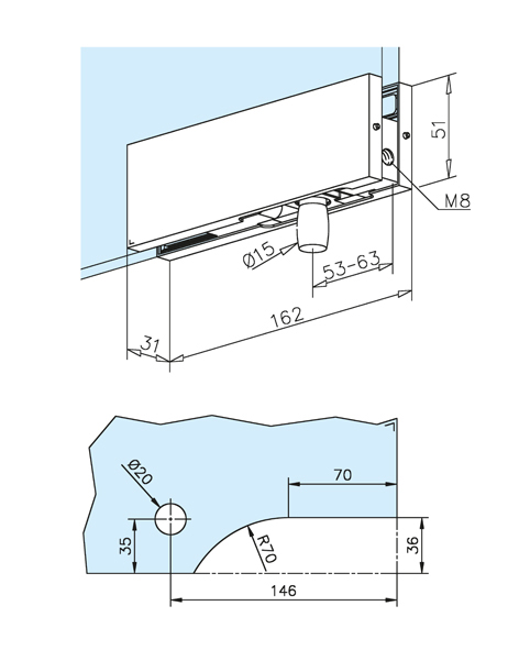 GF Over glass panel pivot patch, glass/wall, M810 - 12 mm black
