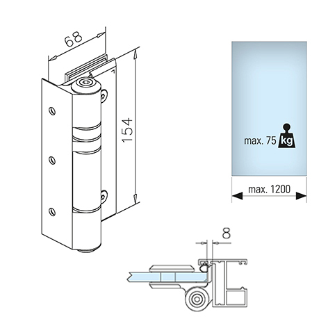 GF Self-closing glass door hinge, wall / glass, for 8-12mm glass, stainless steel design