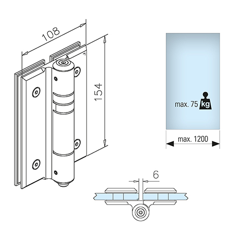 GF Self-closing glass door hinge, wall / glass, for 8-12mm glass, stainless steel design