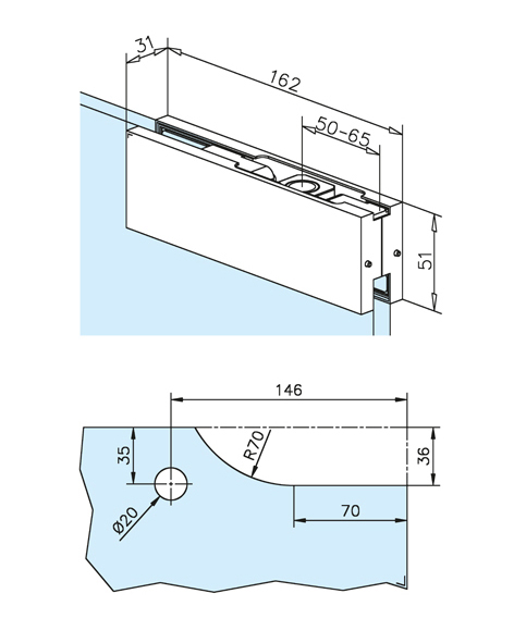 GF Upper glass corner patch for glass thickness 10 - 12 mm black