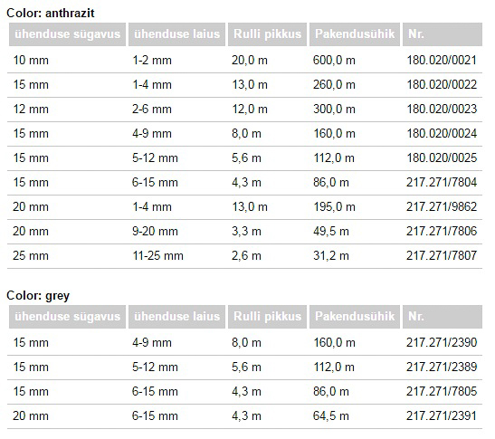NB! Müüme tihendit rullina, 1 rull=5,6m. Juhul, kui seda tihendit laos ei ole, siis on tellimisel minimaalne kogus täiskast 112m.