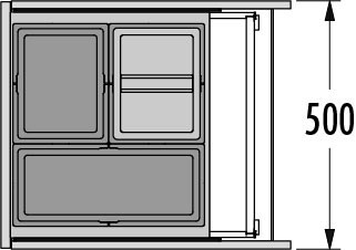 Prügisüsteem on paigaldatav valmisolevasse sahtlisse. Komplekti kuulub raam, prügiämbrid ja ülaplaat.