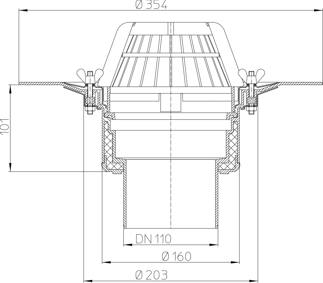 HL Flat-roof drain DN110 with clamping ring - HL62/1