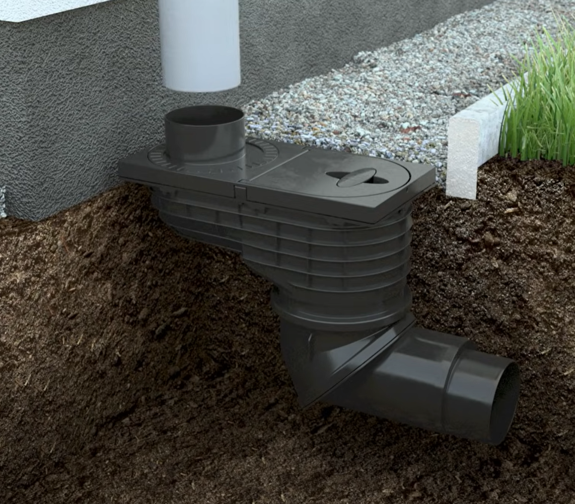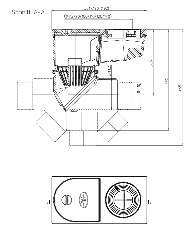 HL Rain water hopper DN110/125 with ball-joint, leaf catcher, frost-proof flap valve, inspection cover, visible parts mad - HL6
