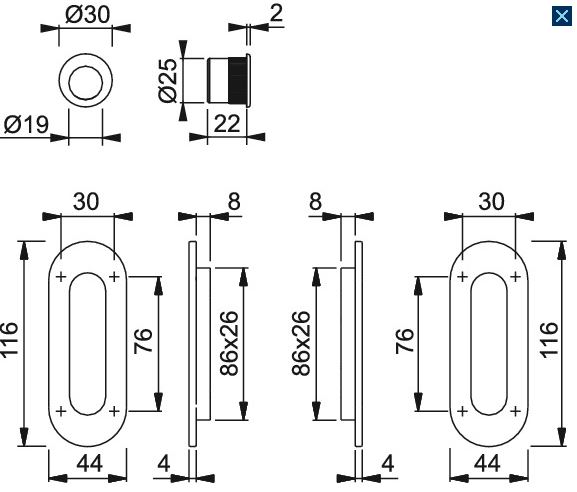 HOPPE sliding door handle/shell M472 PAAR-KIT5 / F96-1-R / BLIND / MIN-33 / 9999
