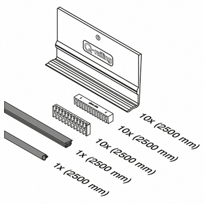 QRAIL Easy-Glass Pro rubber set, glass 20,76mm L=5000mm, black adjustment