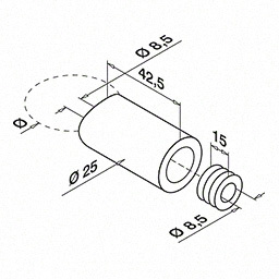 QRAIL spacer, incl. blind connection tube 42,4mm, stainless steel AISI 316 satined