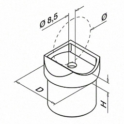 QRAIL Universal fitting, tube 42,4x2,0mm to 42,4mm, stainless steel AISI 316 polisched