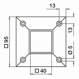 Wall flange for tube 40x40x2mm stainless steel AISI 306 satined