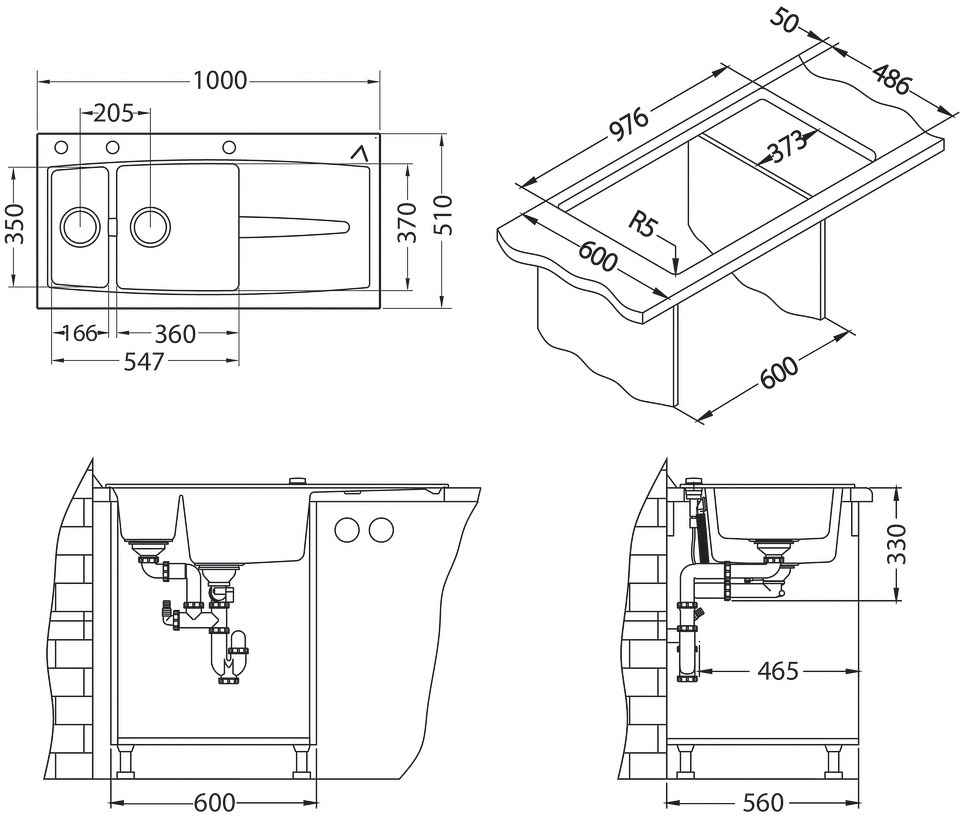 ALVEUS köögivalamu APELLES 70, 1000x510mm, I, graniit, twilight-G05M