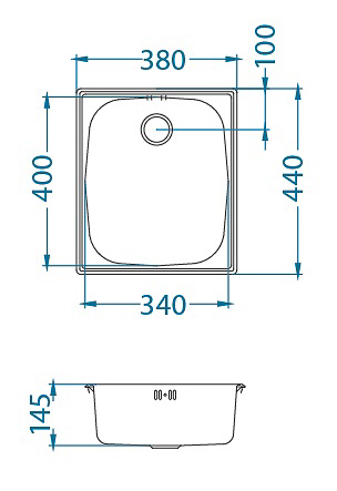 ALVEUS köögivalamu BASIC 10, 380x440mm, I, roostevaba teras, satiin