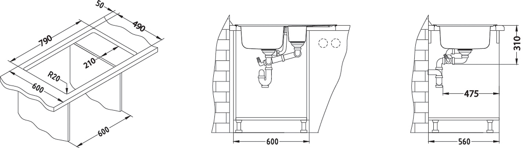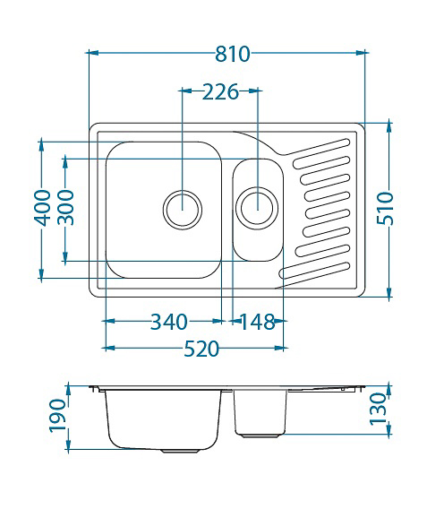 ALVEUS köögivalamu ELEGANT 110, 810x510mm, I, roostevaba teras, satiin