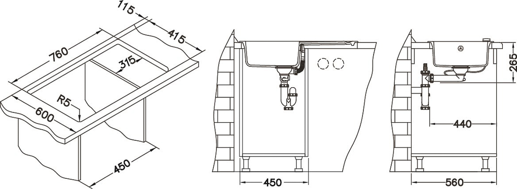 ALVEUS köögivalamu FALCON 30, 780x435mm, I, graniit, arctic-G11