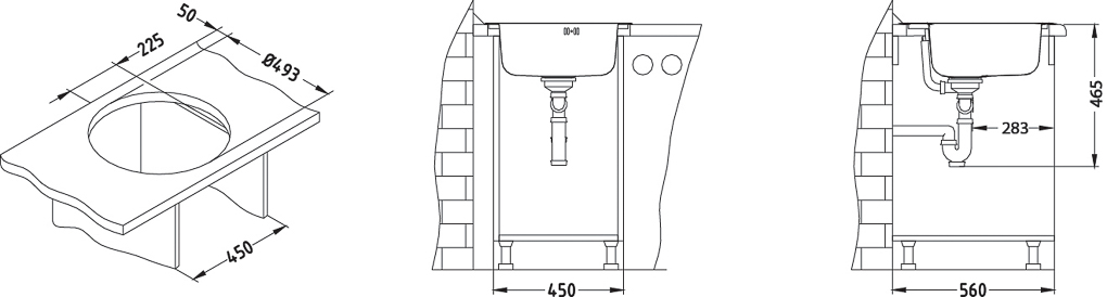 ALVEUS köögivalamu FORM 30, 510mm, I, roostevaba teras, satiin