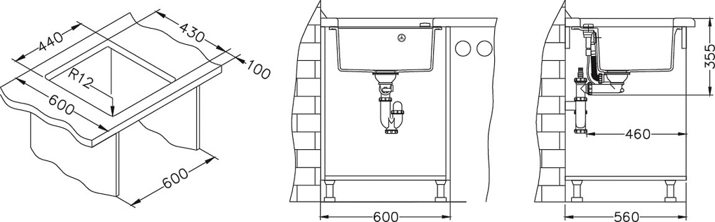 Valamut võimalik paigaldada nii töötasapinna peale (I) kui ka alla (U).