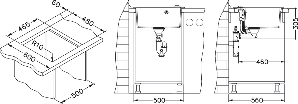 Valamut võimalik paigaldada nii töötasapinna peale (I) kui ka alla (U).