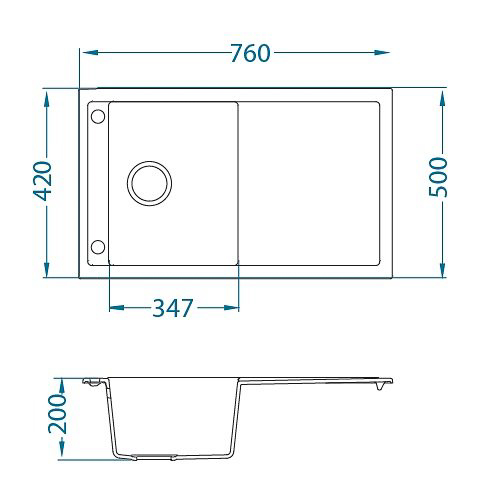 ALVEUS köögivalamu FORMIC 30, 760x500mm, I/U, graniit, carbon-G91