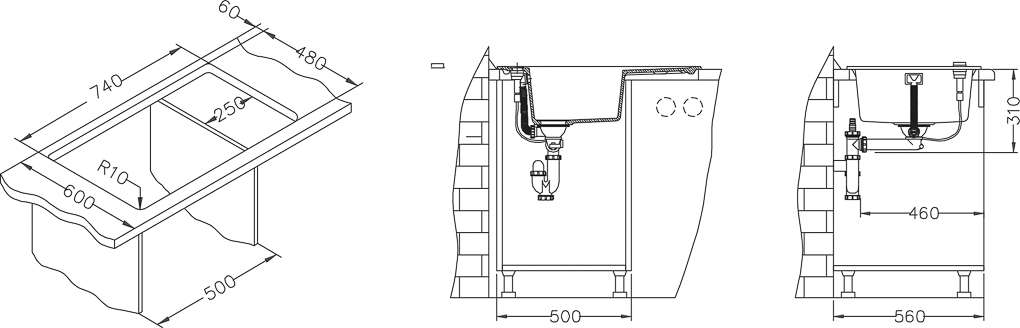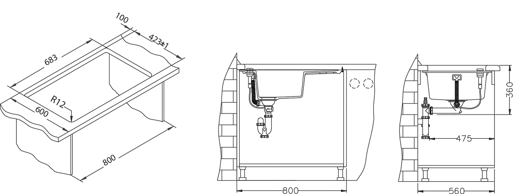 Valamut võimalik paigaldada nii töötasapinna peale (I) kui ka alla (U).