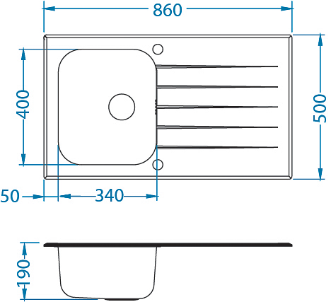 ALVEUS köögivalamu GLASSIX 10, 860x500mm, I, pööratav, roostevaba teras/valge klaas