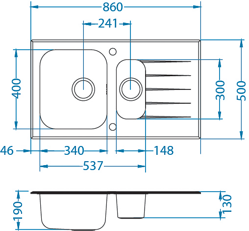 ALVEUS köögivalamu GLASSIX 20, 860x500mm, I, pööratav, roostevaba teras/valge klaas