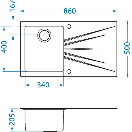 ALVEUS köögivalamu KARAT 10 parem, 860x500mm, I, roostevaba teras/kollane klaas