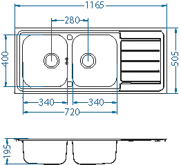 ALVEUS köögivalamu LINE MAXIM 100, 1165x505mm, F/S, pööratav, roostevaba teras, satiin