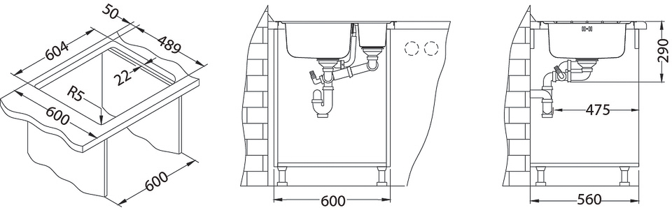 ALVEUS köögivalamu LINE MAXIM 50, 620x505mm, F/S, pööratav, roostevaba teras, satiin
