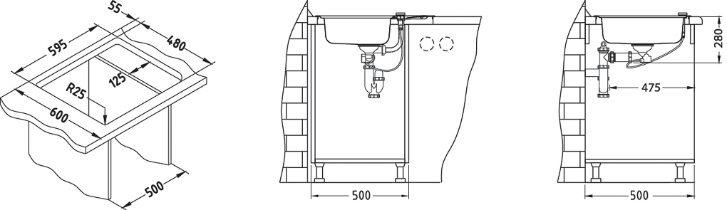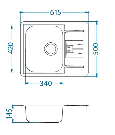 ALVEUS köögivalamu LINE START 60, 615x500mm, I, roostevaba teras, satiin