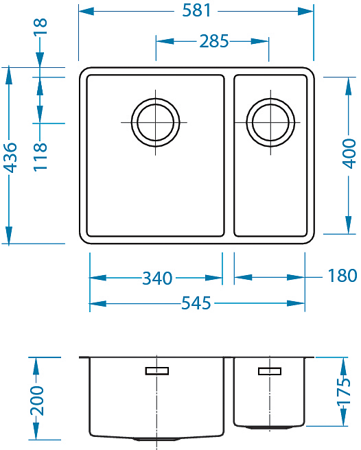ALVEUS köögivalamu MONARCH QUADRIX 120 vasak, 545x400x200mm, U, roostevaba teras, antratsiit